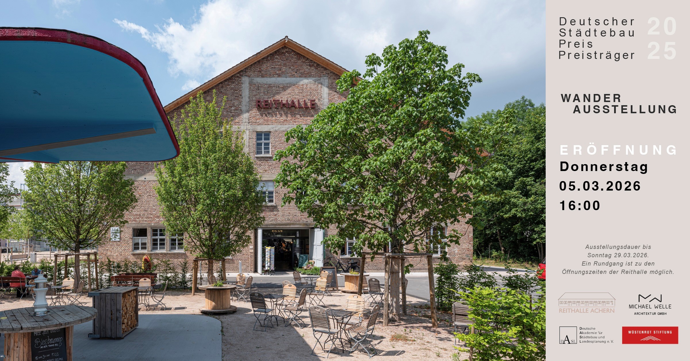 Am 5. März 2026 um 16:00 Uhr ist die Eröffnung der Wanderausstellung Deutscher Städtebau Preis 2025 – Die Preisträger in der Reithalle Achern.